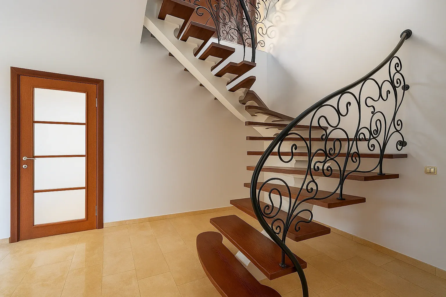 Надёжность и безопасность. Металлокаркас обеспечивает прочность конструкции, а монтаж деревянных ступеней на металлический каркас выполняется с учётом всех стандартов. Стоимость работ рассчитывается индивидуально, зато итоговый результат гарантирует безопасность, долговечность и комфорт в использовании лестницы каждый день.